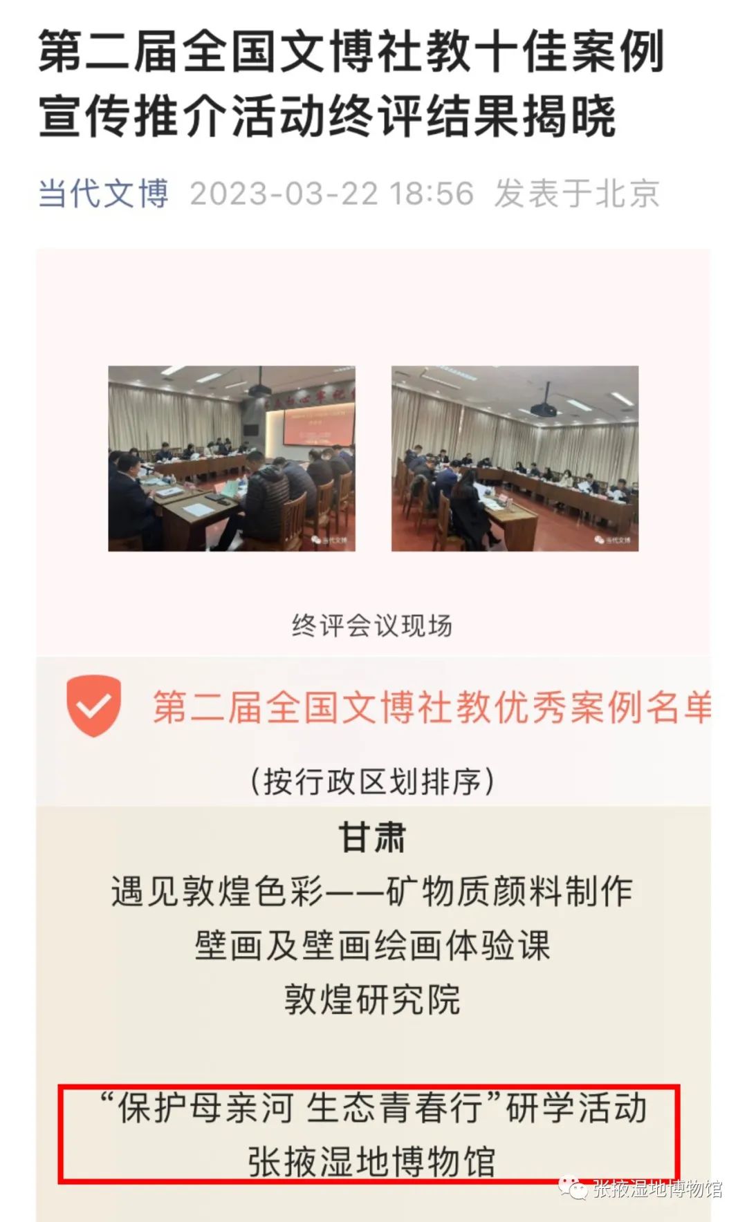 喜报 | 张掖湿地博物馆1项研学活动荣获全国文博社教优秀案例